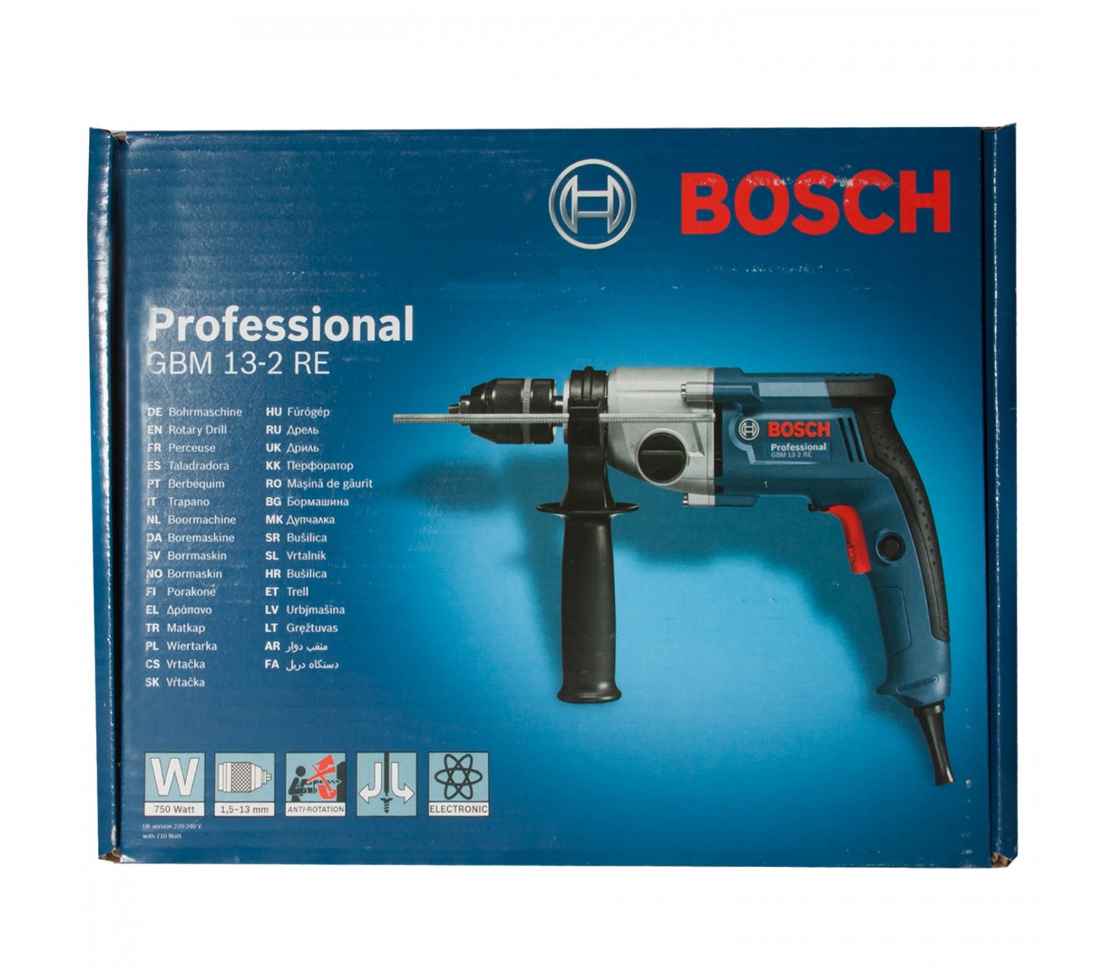 Elektriskais perforators Bosch GBM 13-2 RE, 750 W, kartona iepakojumā