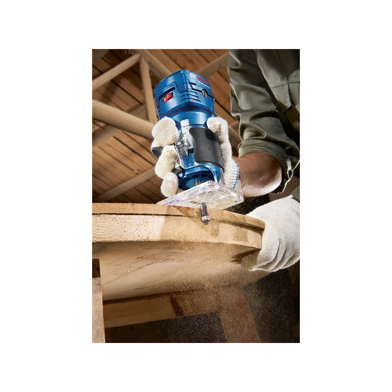 Kompakta un jaudīga – Bosch GLF 55-6 Professional ar 550 W motoru un 33 000 apgr./min nodrošina ātru, tīru malu frēzēšanu. Ideāli piemērota laminātam un finierim. Svars tikai 1,4 kg, viegli lietot ar vienu roku, caurspīdīgs pamats labākai redzamībai.