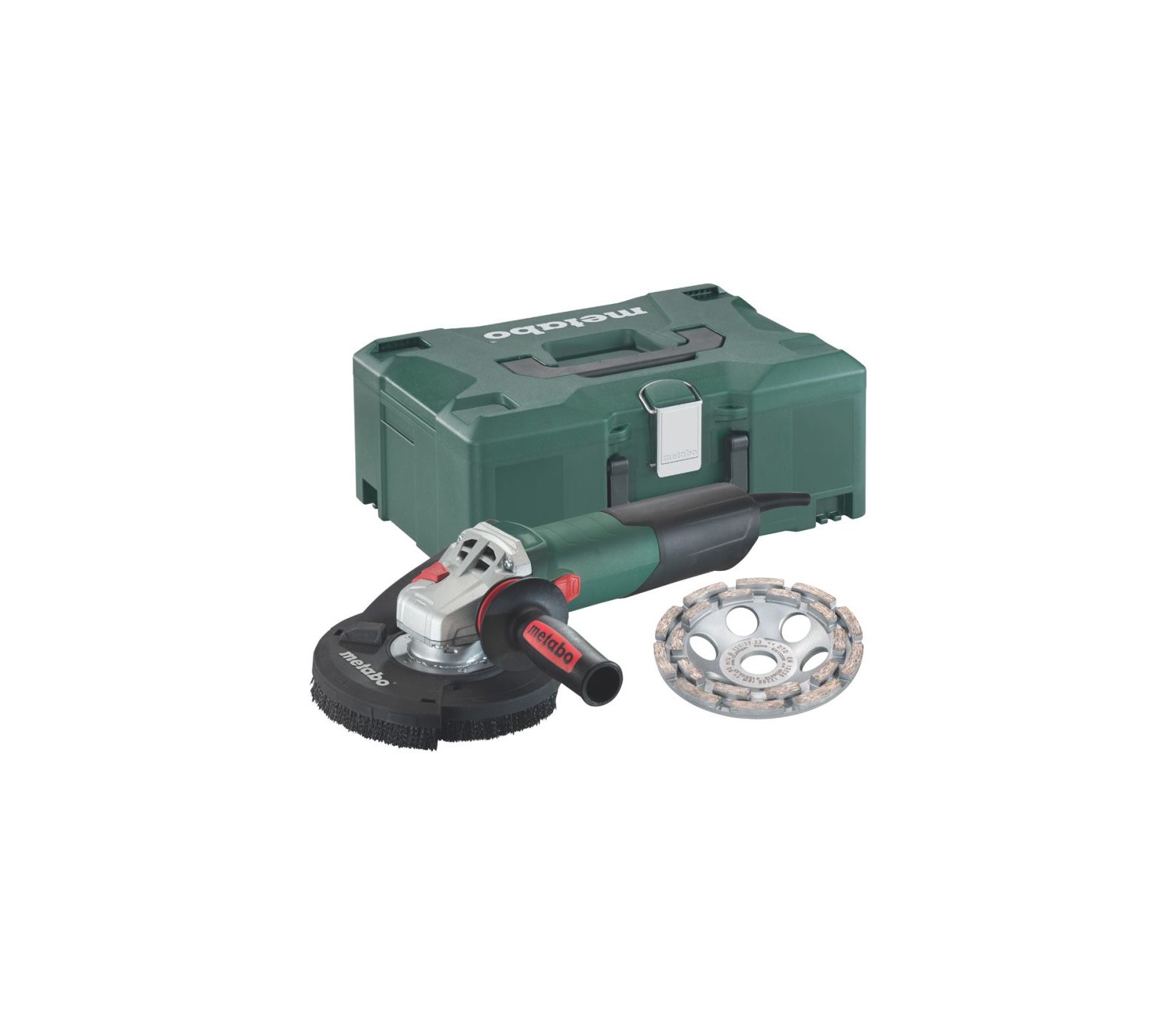 Elektrisko leņķa slīpmašīnu Metabo WE 15-125 HD (600465510) komplekts, 125 mm, 1550 W, dimanta disks + korpuss