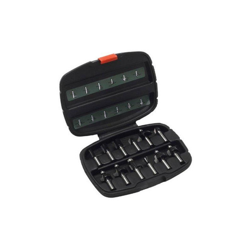 Zīmols - Bosch. Pants- 0802.7.2. Kāta diametrs ir 8 mm. Komplektā - 12 frēžu komplekts ar 8 mm kātu: 3 cimdu frēzes, abpusēji; 2 pusapaļi griezēji; 2 noapaļošanas griezēji; 1 profila griezējs; 1 griešanas griezējs; 1 rezerves griezējs; 1 V-veida cimdu griezējs; 1 šuvju griezējs. Apstrādātais materiāls - Koks. Ar korpusu - Jā. Garantija - 24 mēneši. Papildus informācija - Garumi: 15, 12,7, 13, 13,5, 16,5, 19,7, 11,8, 16,3 mm.