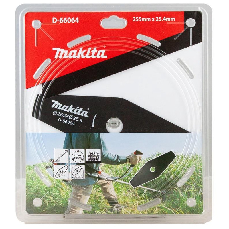 Zāles pļāvēja piederumu veids - Pļaušanas asmens. Zīmols - Makita. Pants- D-66064. Garums - 25,5 cm. Platums - 25,5 cm. Diametrs - 255 mm. Materiāls - Metāla sakausējums.