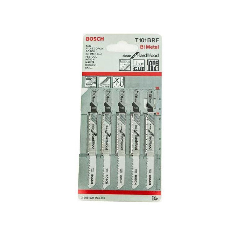Zīmols - Bosch. Pants- 2608634235. Garums - 100 mm. Darba daļas garums ir 75 mm. Zobu solis - 2,5 - 2,5 mm. Apstrādātais materiāls - Koks. Griezuma biezums - 3 - 45mm. Pareiza griešana - Tīrs. Vienības iepakojumā - 5.