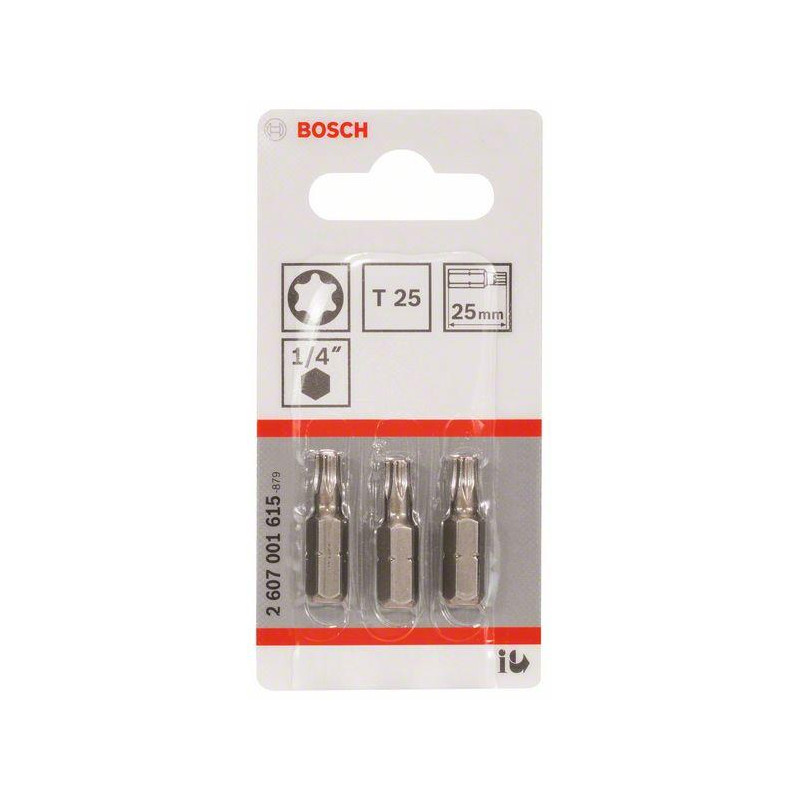 Zīmols - Bosch. Pants- 2 607 001 615 . Garums - 25 mm. Materiāls - Tērauds. Magnētiskā galva - Nr. Elastīgs - nē. Garantija - 24 mēneši. Detaļu skaits komplektā - 3. Papildus informācija - Magnētiskā galva: Nr. Materiāls: tērauds. Garums: 25 mm.
