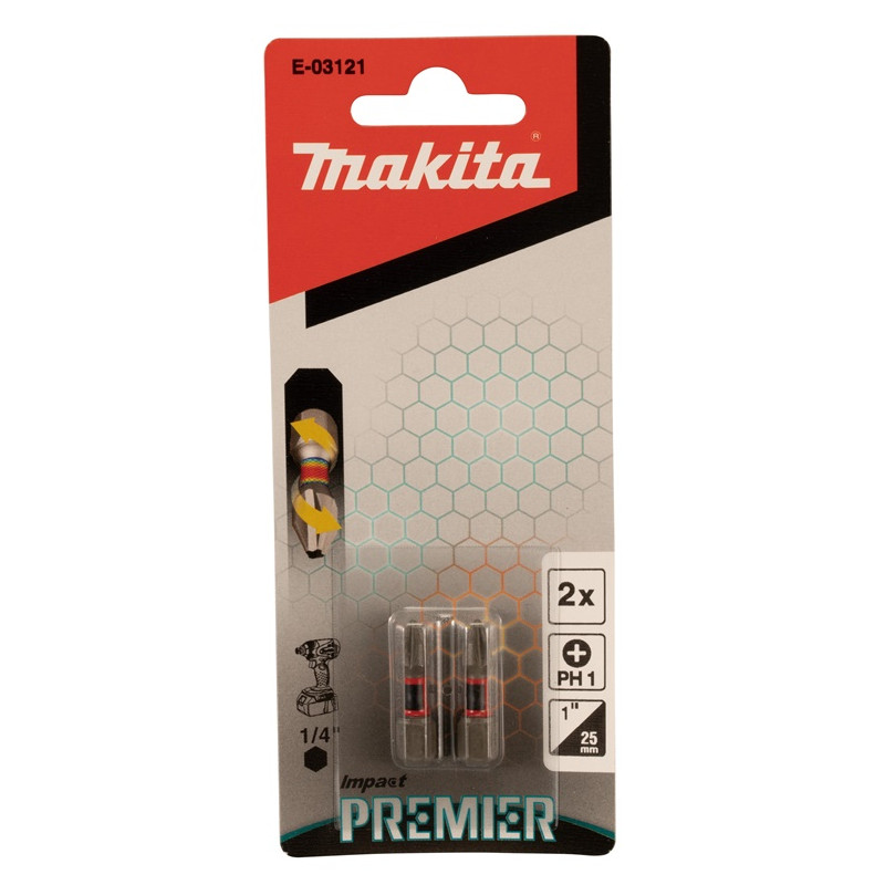 Zīmols - Makita. Raksts- E-03121. Garums - 25 mm. Materiāls - Metāla sakausējums. Magnētiskā galva - Nr. Elastīgs - nē. Detaļu skaits komplektā - 2.