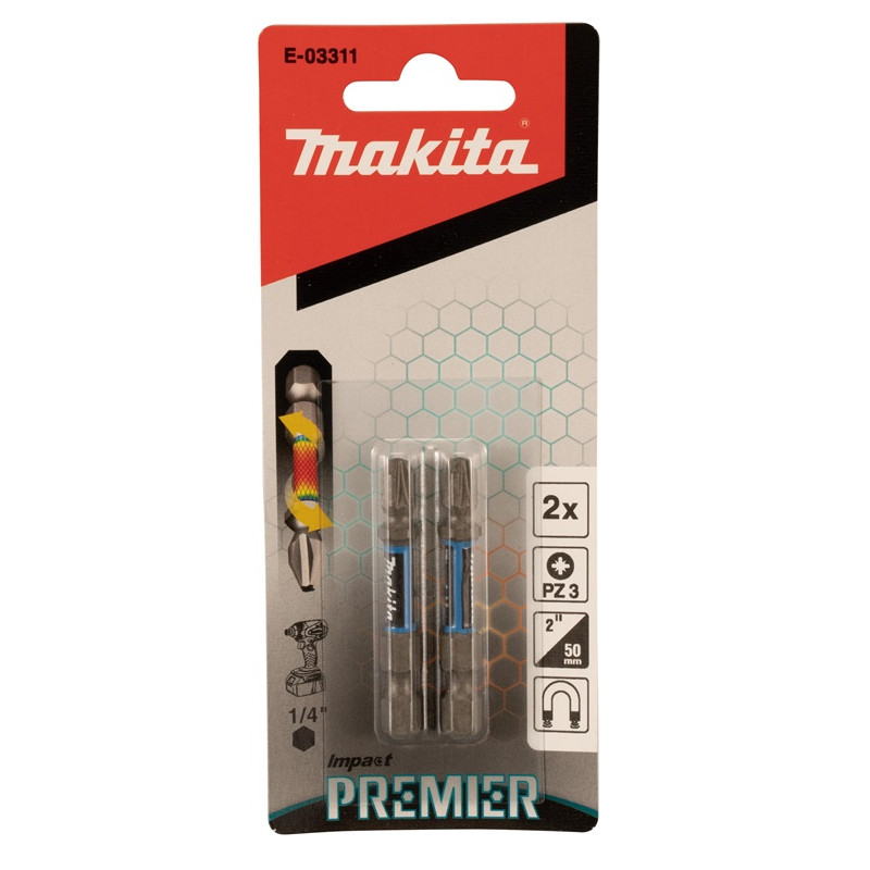 Zīmols - Makita. Raksts- E-03311. Garums - 50 mm. Materiāls - Metāla sakausējums. Collu savienojums - 1/4''. Magnētiskā galva - Jā. Elastīga - Nē. Detaļu skaits komplektā - 2.