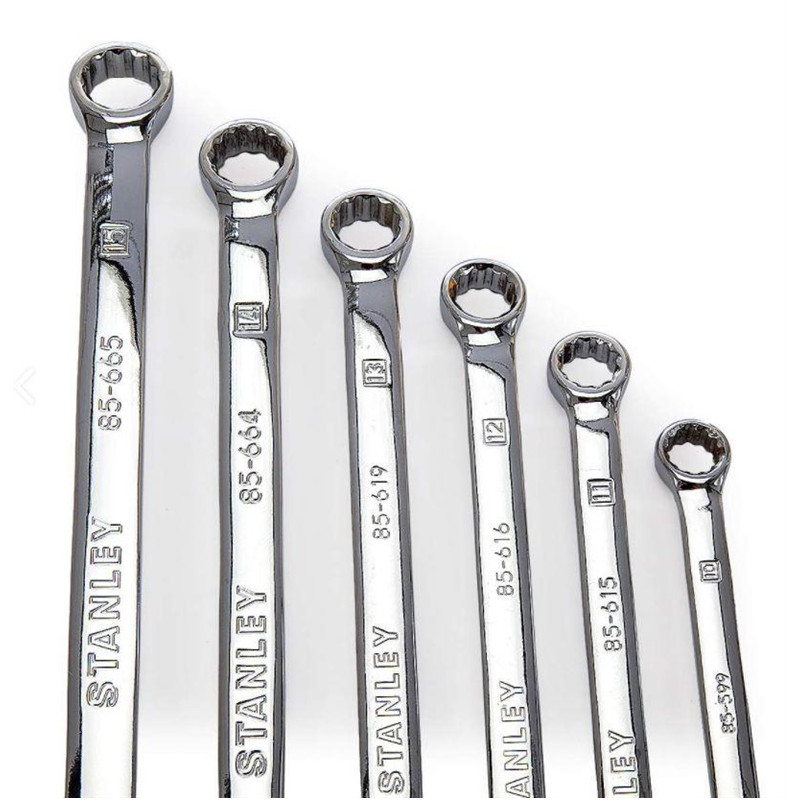 Zīmols - Stanley. Modelis- 4-94-646. pants- 4-94-646. Materiāls - Metāla sakausējums. Detaļu skaits komplektā - 6. Komplektā - Cr-V: 10; 11; 12; 13; 14; 15 mm. Ar korpusu - Jā.