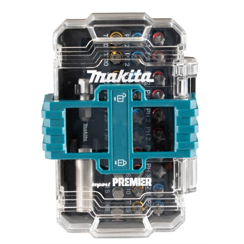 Zīmols - Makita. Pants- E-13552. Materiāls - Metāla sakausējums. Elastīgs - nē. Detaļu skaits komplektā- 31. Komplektā- pagriežamie biti: 1 x PH1, 5 x PH2, 2 x PH3, 1 x PZ1, 5 x PZ2, 2 x PZ3minus biti: 1 x SL4, 1 x SL6Torx biti: 1 x T10, 1 x T15, 3 x T20, 2 x T25, 2 x T30 sešstūra uzgaļi: 1 x H4, 1 x H5, 1 x H6 magnētiskais turētājs.