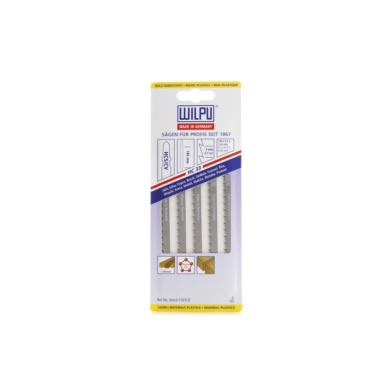 Zīmols - Wilpu. Pants- 02150 00005. Garums - 130 mm. Darba daļas garums ir 105 mm. Zobu solis - 3 - 3mm. Apstrādātais materiāls - Metāls, Plastmasa, Koks. Griezuma biezums - 5 - 6,5mm. Pareiza griešana - Tīrs. Vienības iepakojumā - 5. Garantija - 24 mēneši. Papildus informācija - Zobu solis: 3 mm. Plāksnes biezums: 50 - 65 mm. Garums: 130 mm. Darba zonas garums: 105 mm.