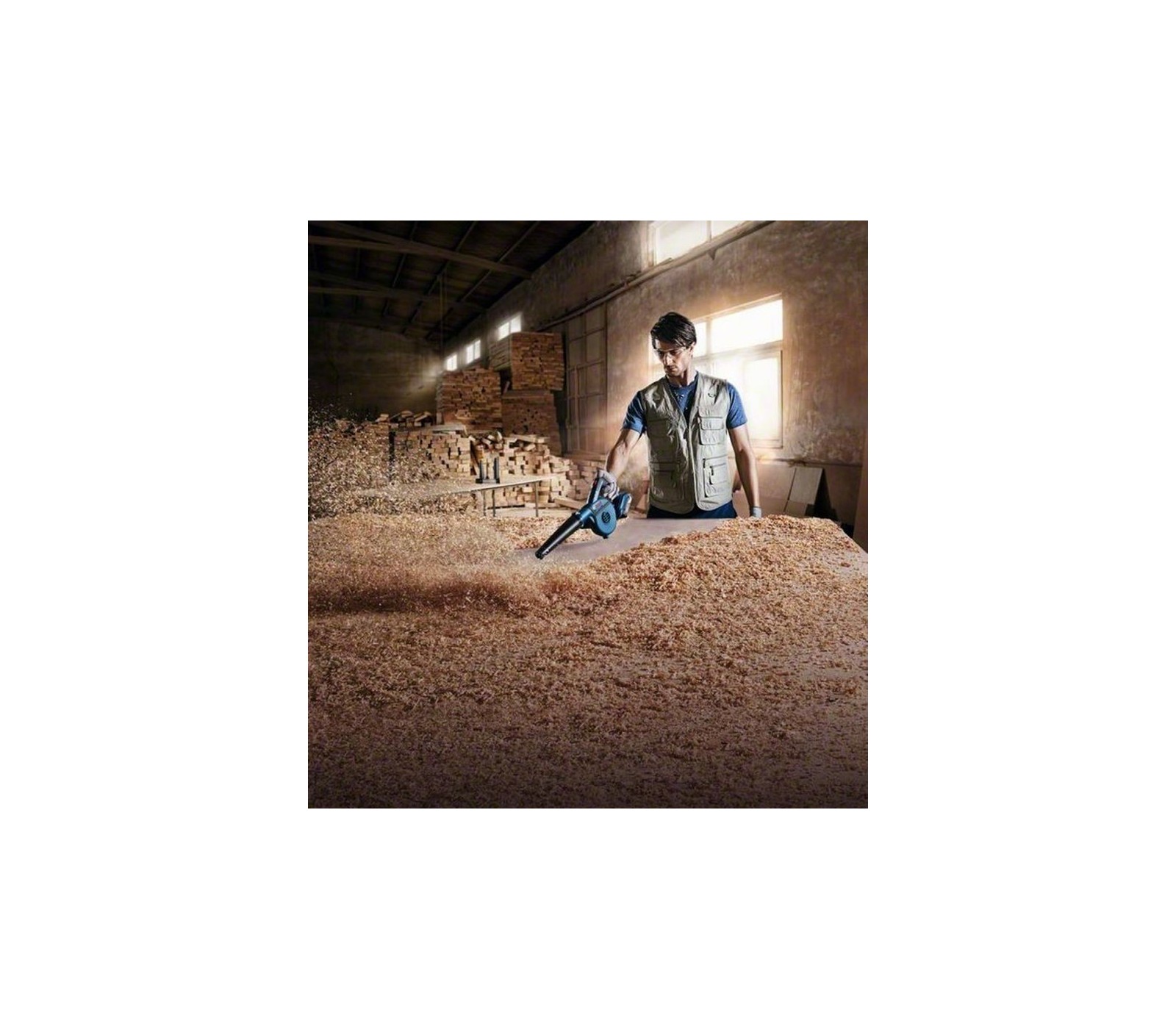Bosch GBL 18 V-120 ir jaudīgs bezvadu pūtējs, kas paredzēts, lai nodrošinātu augstas veiktspējas gaisa plūsmu. Ar maksimālo gaisa ātrumu 270 km/h un maksimālo gaisa plūsmu 120 m³/h tas ir ideāli piemērots atkritumu tīrīšanai vai lapu pūšanai. Pūteris darbojas ar 17 000 apgr./min. un piedāvā divus ātruma iestatījumus daudzpusīgai lietošanai. Tas ir viegls, tikai 1,1 kg (bez akumulatora), tāpēc ir viegli manevrēt. Produkts tiek piegādāts kartona iepakojumā, un tas nesatur akumulatoru un lādētāju.