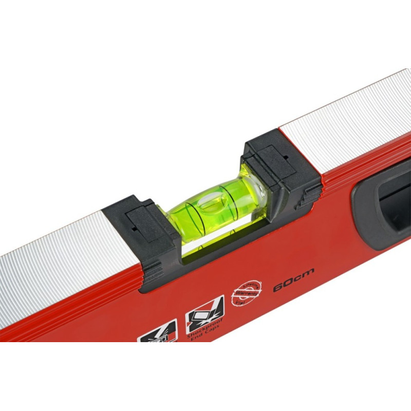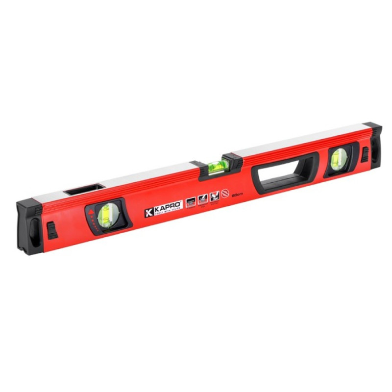 Cilpas: - līmeņrādis ar labi saskatāmu aci, kas ir līdz 33% lielāka nekā iepriekš. - PLUMB SITE® DUAL-VIEW™ - augšējā skata cilpas. - Visiem līmeņiem ir 2 vertikālas un 1 horizontālas cilpas. - Precizitāte: 0,5 mm/m. Forma un dizains: - V-veida pamatne, kas ļauj ērti izmantot līmeņrādi stūros un uz caurulēm. - Frēzēts no abām pusēm īpaši precīzai virsmai. - Gumijas, izturīgi, triecienu absorbējoši uzgaļi izcilai triecienu absorbcijai. - Ērti rokturi ar gumijas pārklājumu - no 80 cm gari, līmeņrāžiem ir 2 rokturi. Instrumentu izmanto: - Galdniecības darbiem. - Par būvdarbiem. - Mūrēšanas darbiem. - Jumta seguma darbiem.