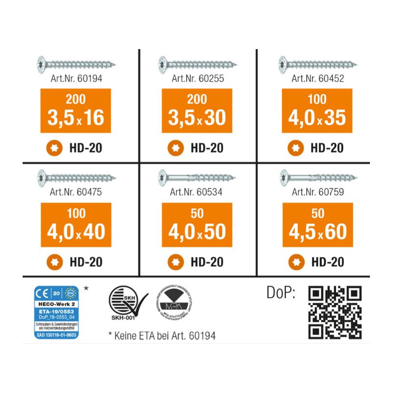 Heco skrūvju komplekts, HECO-L-BOXX Mini, 700 skrūves (ar korpusu)