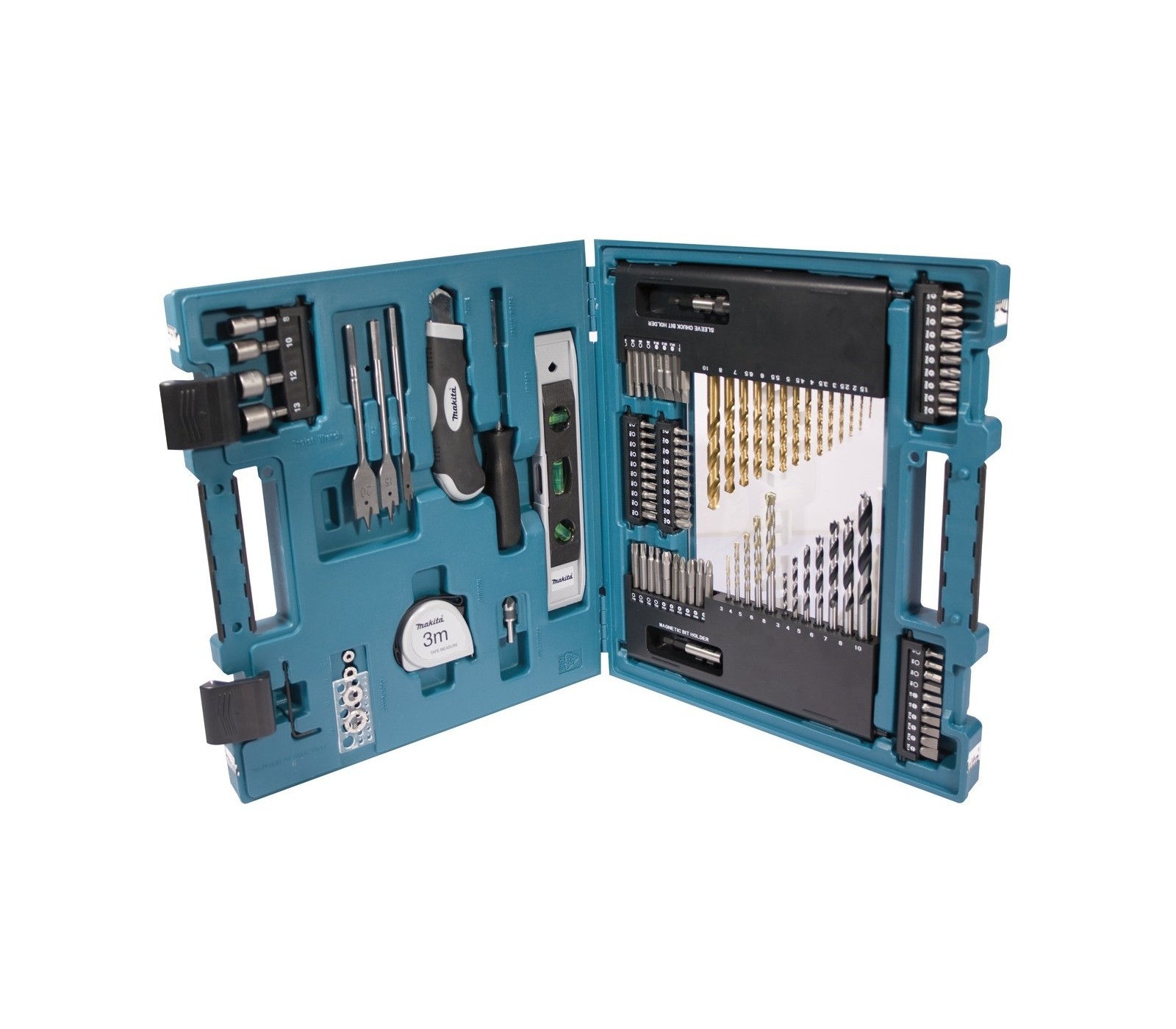 Makita D-31778 Urbumu un skrūvju uzgriežņu komplekts, 104 gabali – Universāls komplekts darbam ar metālu, koku un mūri. Komplektā ir 14 HSS-TiN urbji metālam, 10 urbji kokam, 6 urbji mūrim, 1 dziļuma ierobežotājs, 5 urbšanas ierobežotāji, 58 skrūvju uzgriežņi, 2 bitu turētāji un 4 skrūvju galvas. Visi komponenti ir kārtīgi iepakoti plastmasas kastē ērtai glabāšanai. Kopā 104 daļas dažādiem urbšanas un skrūvēšanas uzdevumiem.