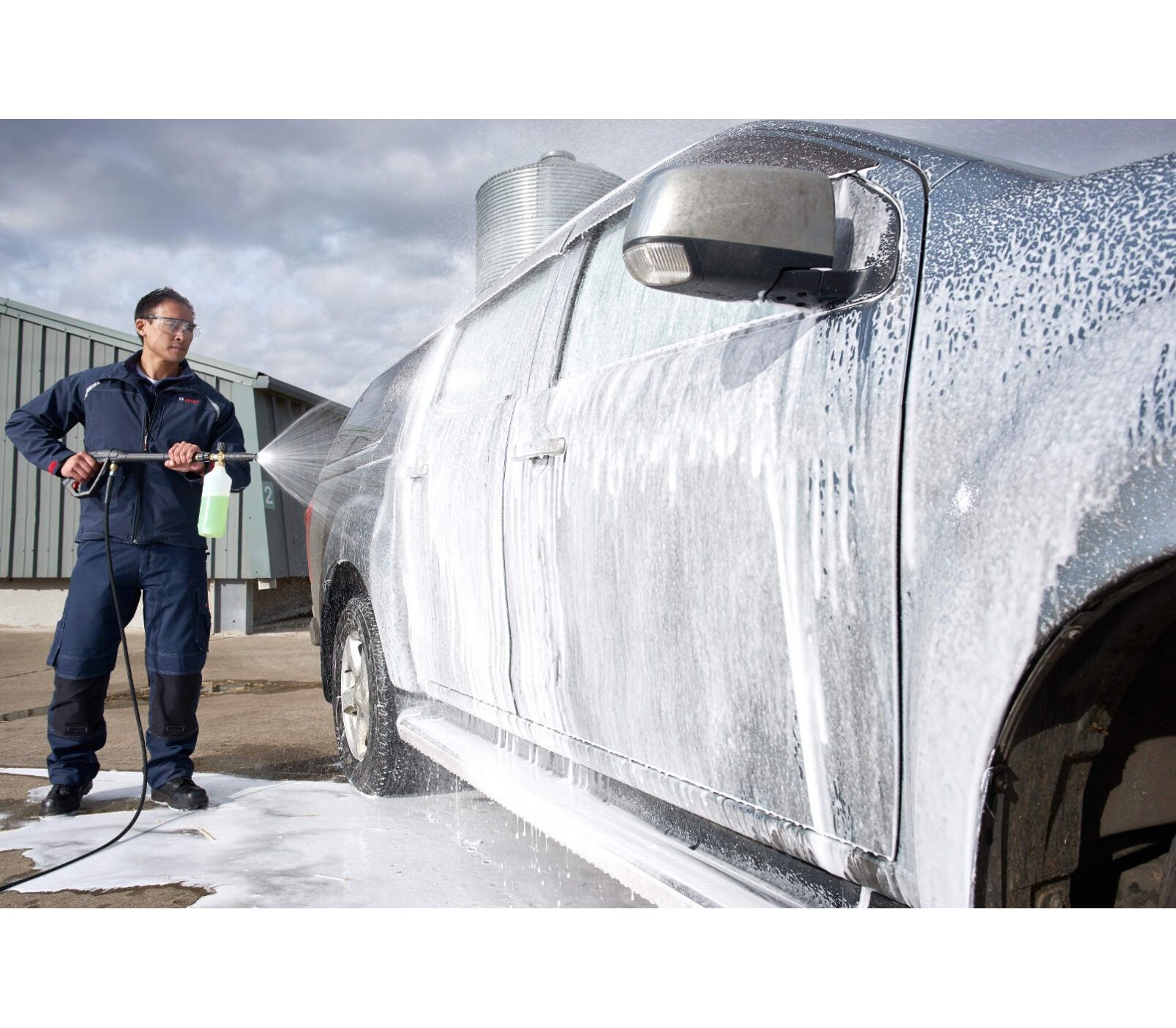 - Augsta spiediena šļūtene viegli sasniedz grūti aizsniedzamas vietas.