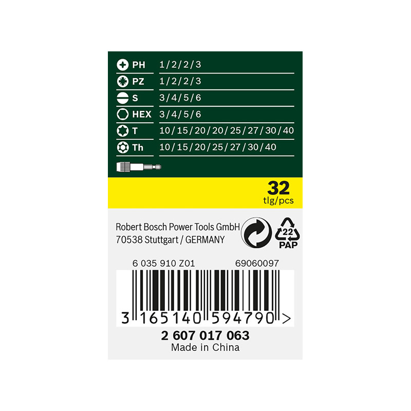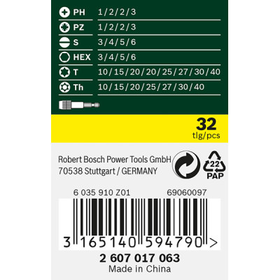 Bosch skrūvgriežu komplekts plastmasas kastē, 32 gab. (2607017063)