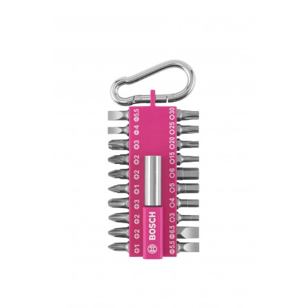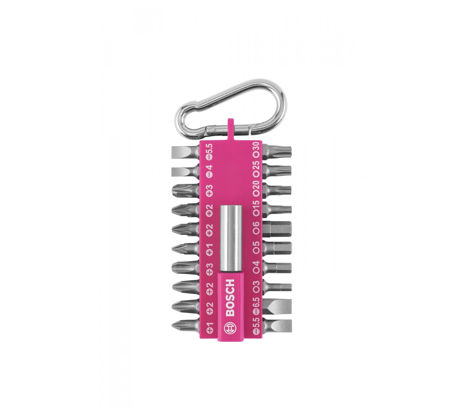 Bosch skrūvgriežu uzgaļu komplekts ar karabīni, rozā, 21 gab.