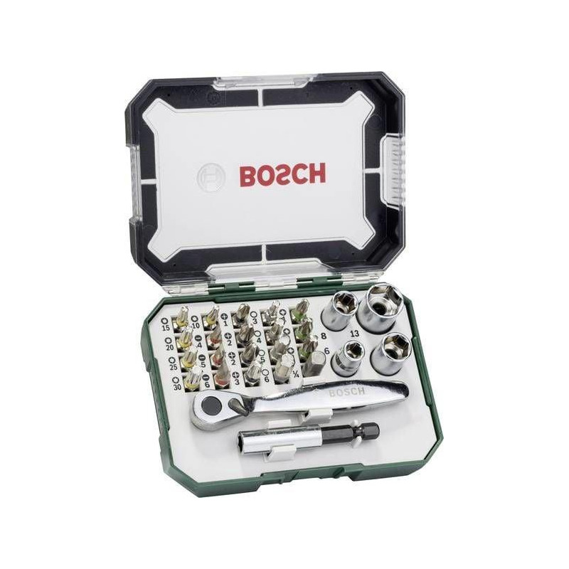 Zīmols - Bosch. Artikuls - 2607017393. Svars - 0,37 kg. Materiāls - Metāls. Magnētiskā galva - jā. Elastīgs - nē. Garantija - 24 mēneši. Detaļu skaits komplektā - 27. Papildus informācija - Materiāls: metāls.