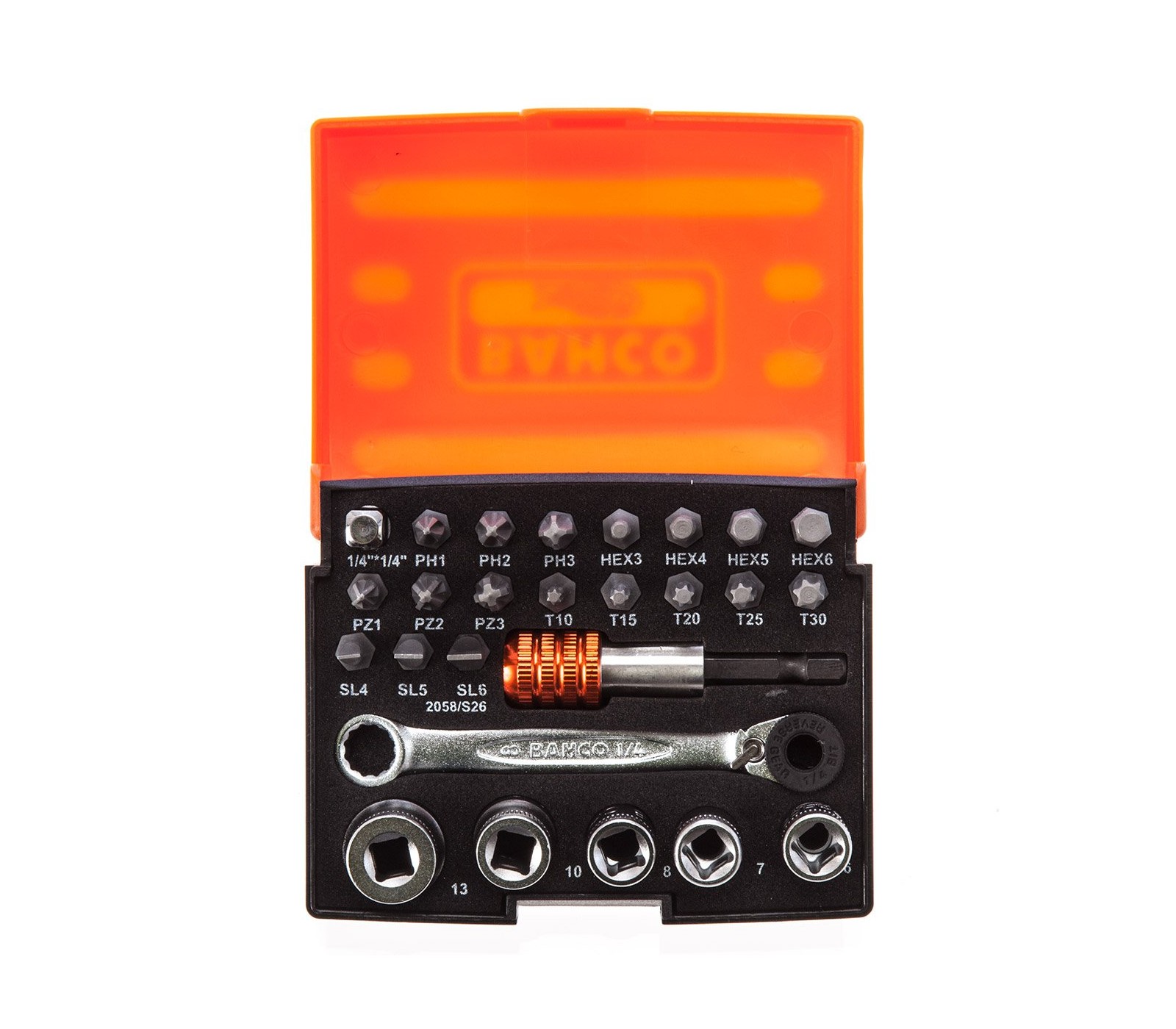 Vītņuzgaļu un galviņu komplekts Bahco (2058/S26), 1/4'', 26 gab.
