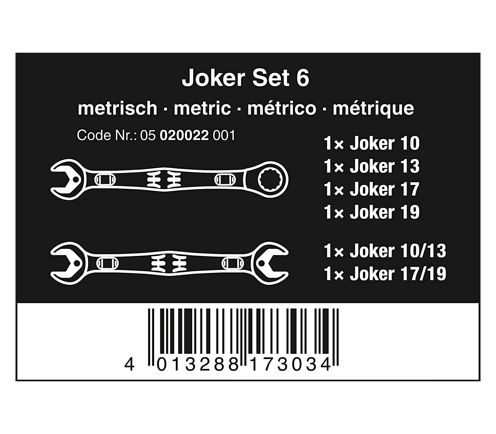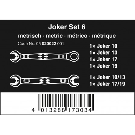 Wera 6000/6002 Joker sprūdrata kombinācija/dubultā uzgriežņu atslēgu komplekts (05020022001), 6 gab.