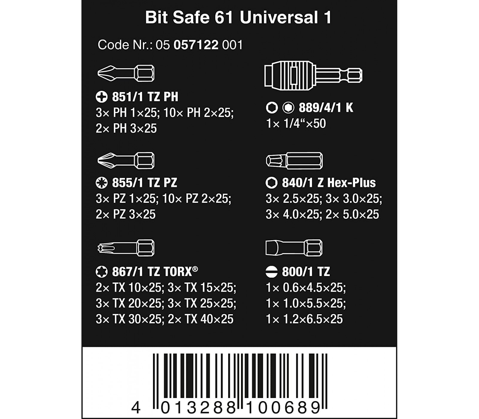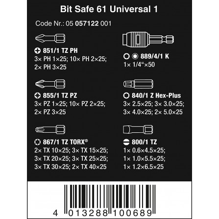 Wera skrūvgriežu un galviņu komplekts Bit-Safe 61 Universal 1 (05057122001), 61 gab.