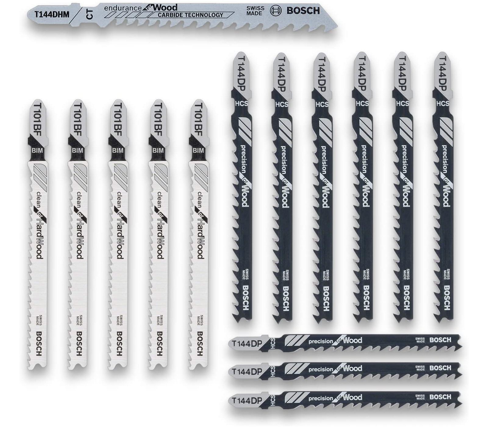 9 x T 144 DP Precision for Wood, 5 x T 101 BF Clean for Hard Wood, 1 x T 144 DHM Endurance for Wood